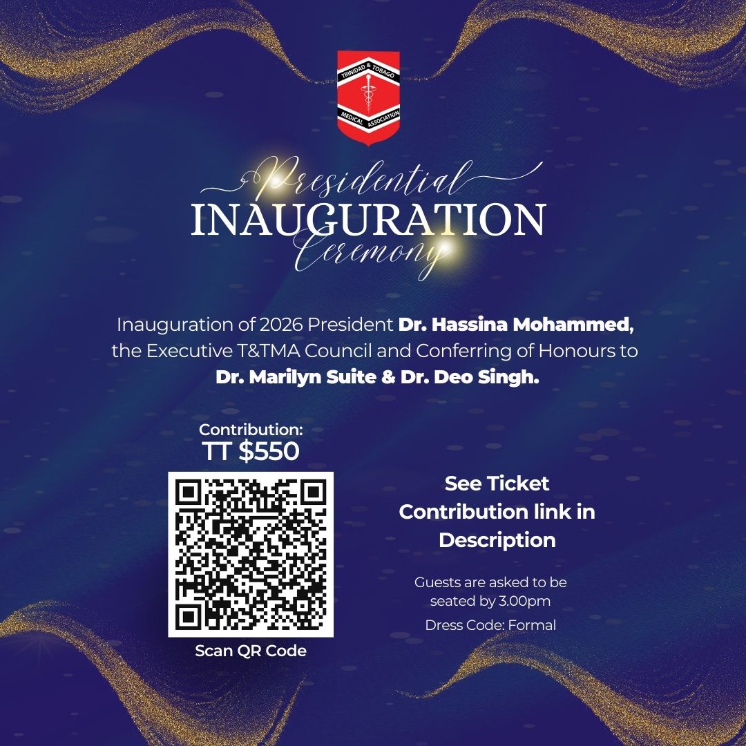 The President and Council of the Trinidad and Tobago Medical Association cordially invite members and distinguished guests to attend the Presidential Inauguration Ceremony 2026.